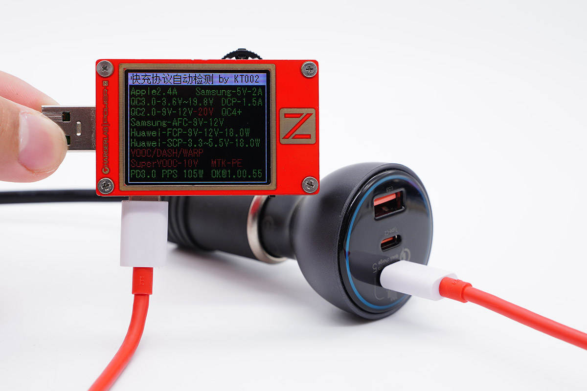 使用倍思這款車充USB-C1口給努比亞Z30 Pro充電,使用ChargerLAB POWER-Z KM001C測(cè)得充電功率為17.47V 5.26A 91.96W。