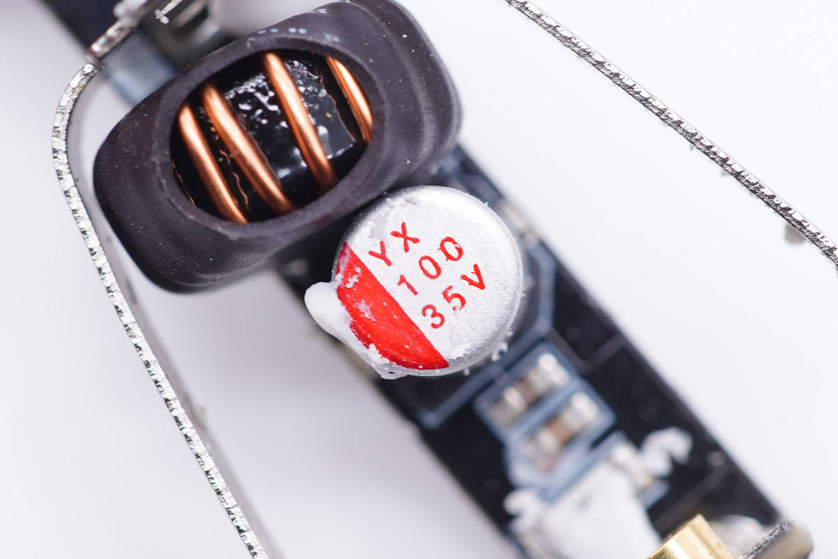 輸入濾波固態(tài)電容來自福建云星電子有限公司,規(guī)格為35V 100μF。“YX”牌固態(tài)電容專門針對(duì)USB PD快充設(shè)計(jì),在105℃的工作環(huán)境下仍能保證2000小時(shí)的壽命,同時(shí)兼具耐高溫、耐大紋波、低ESR等特性。