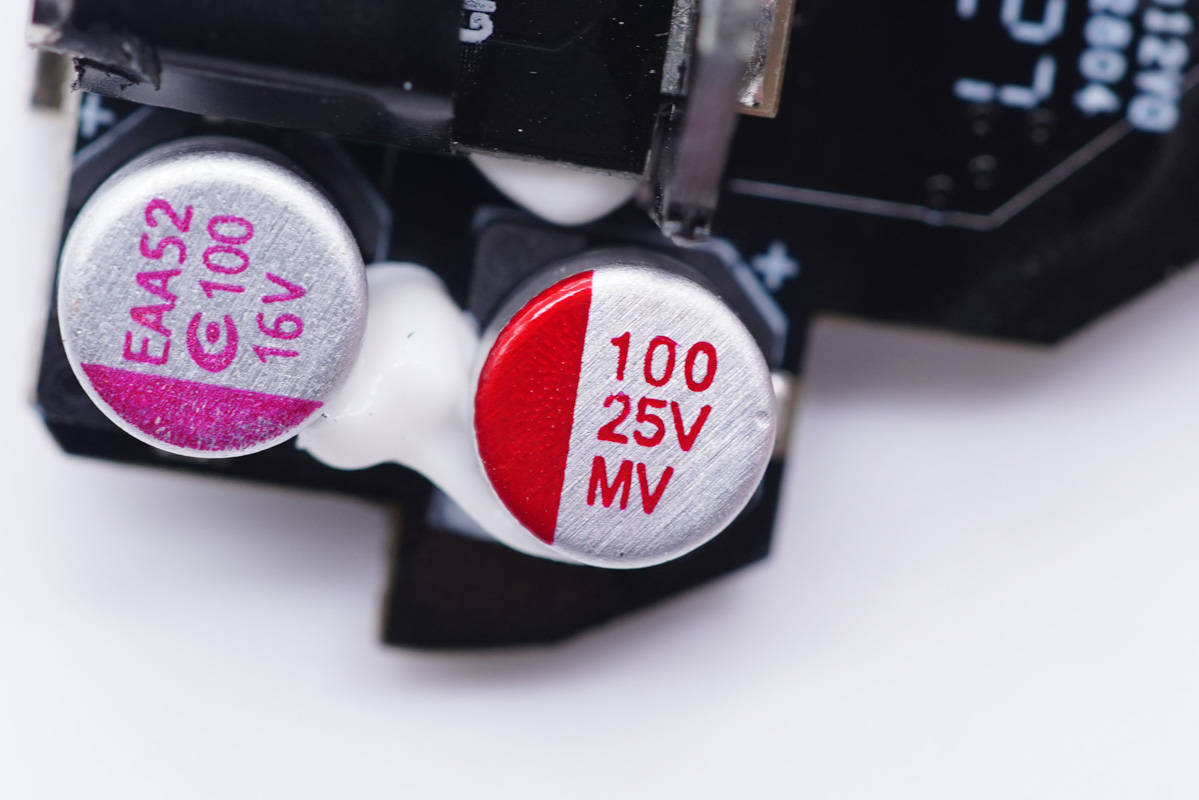 另一顆電容則用于A口濾波輸出,來自鈺邦,規(guī)格為16V 100μF。