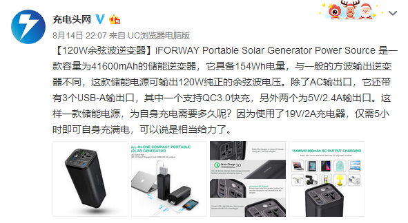 近期,知名數(shù)碼博主充電頭網(wǎng)爆料,美亞有上架一款新的便攜式儲(chǔ)能電源——iFORWAY Portable Solar Generator Power Source。
