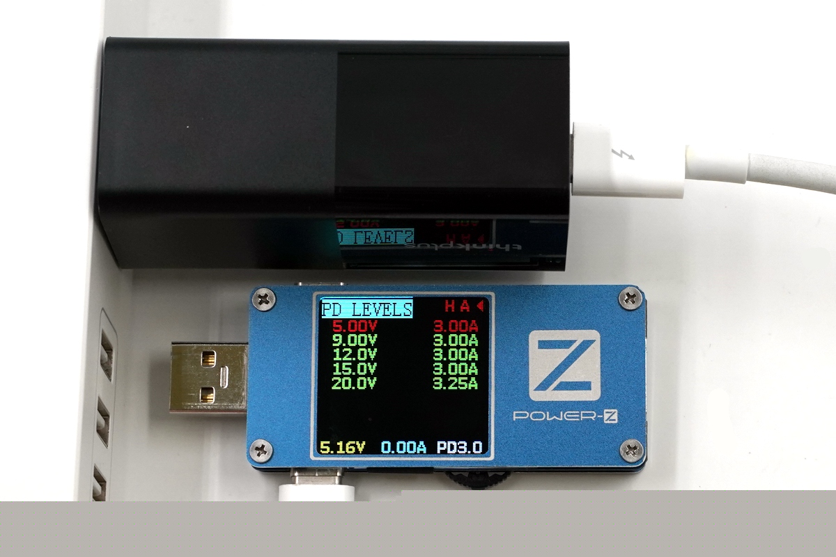 使用ChargerLAB Power-Z FL001S測(cè)試儀進(jìn)行協(xié)議檢測(cè),thinkplus充電器支持USB PD、QC 2.0、QC 3.0快充。