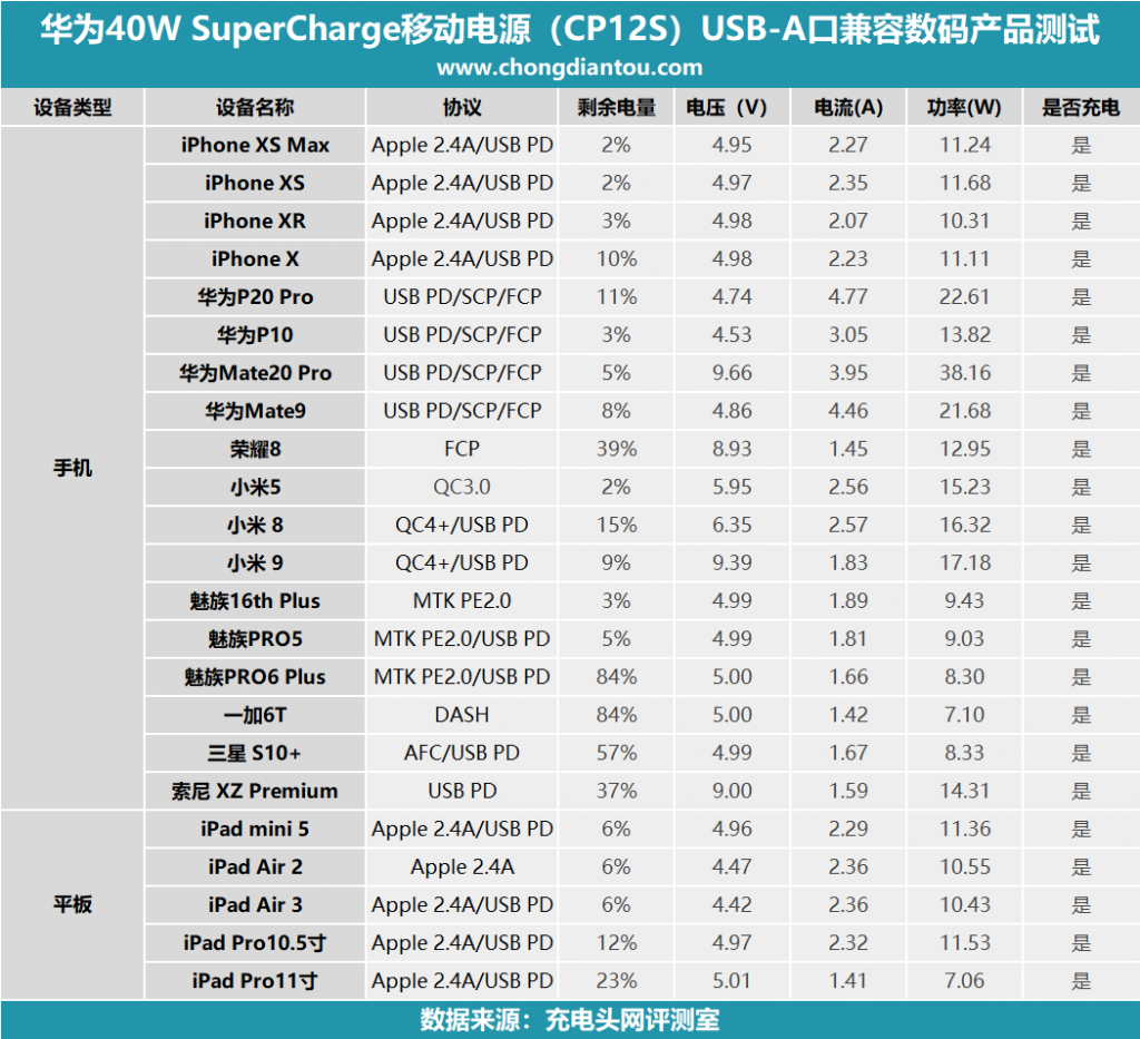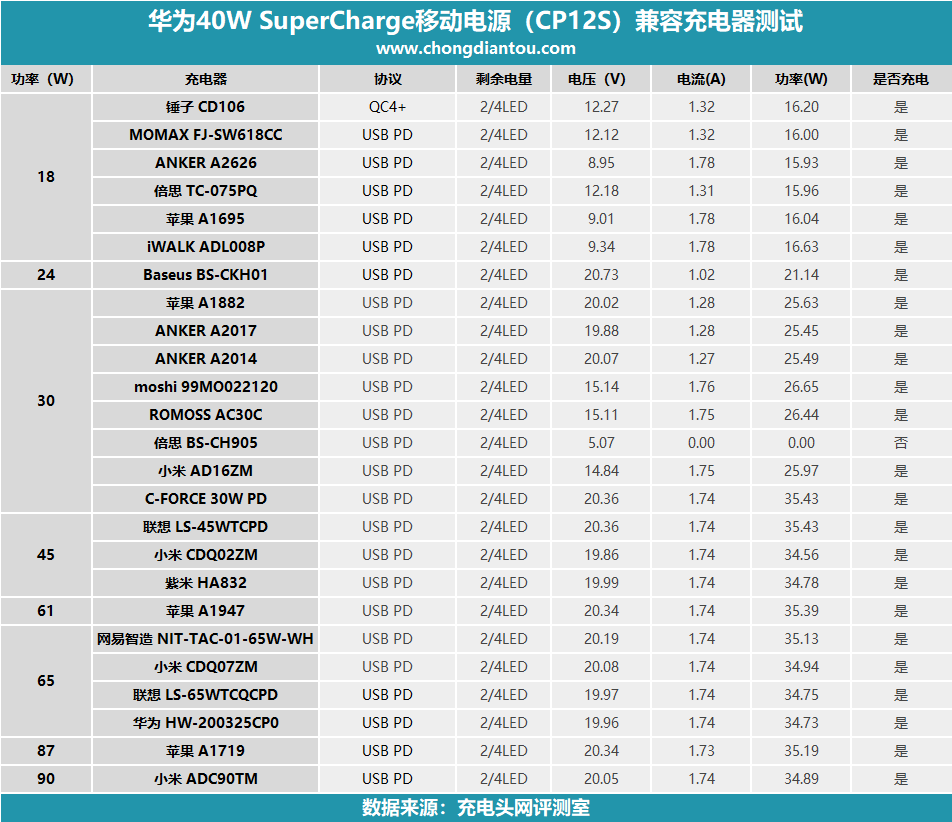 二、華為40W SCP移動電源測試
