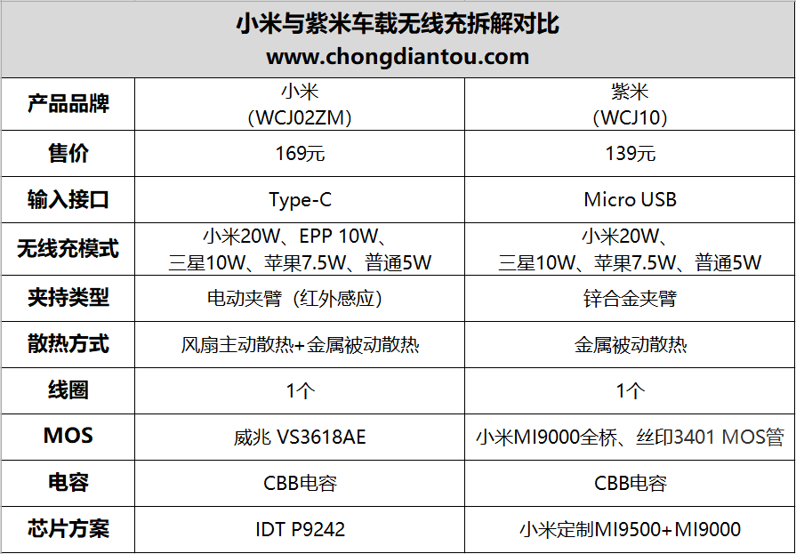 今天充電頭網要給大家帶來的就是小米169元和紫米139元無線充車載支架的拆解對比,看看這兩款產品到底有什么區別。