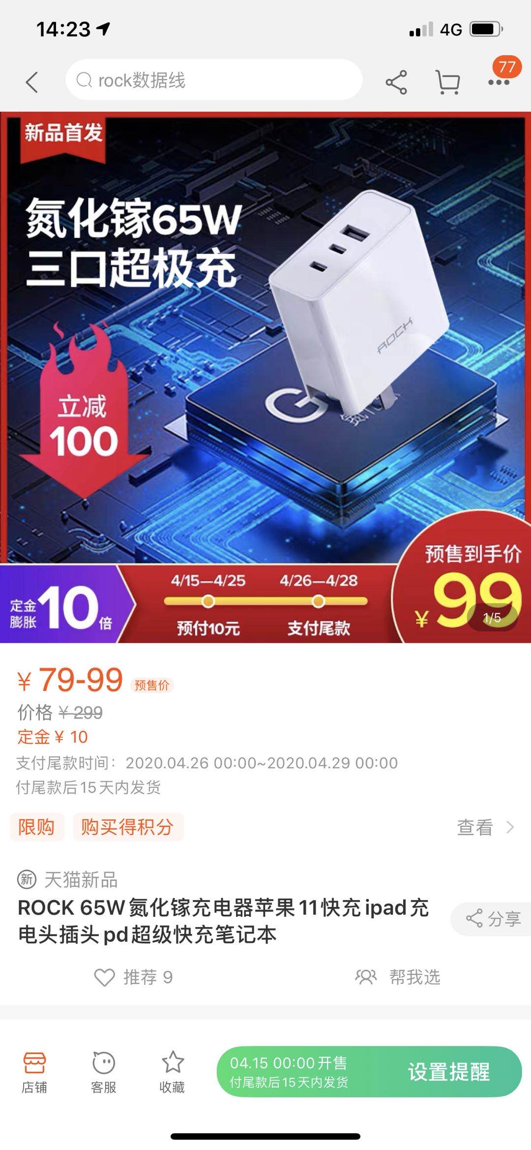 今日,ROCK這款搭載“中國芯”的65W 2C1A氮化鎵快充充電器正式上架開賣。 ROCK天貓旗艦店產(chǎn)品預(yù)售界面顯示,ROCK最新款65W氮化鎵充電器售價(jià)僅為99元,在該功率區(qū)間,打破了此前由小米保持的149元的最低售價(jià)。相比小米65W氮化鎵快充,ROCK 65W氮化鎵快充不僅價(jià)格下降三分之一,而且還新增了兩個(gè)充電接口以及折疊插腳,實(shí)用性能更強(qiáng)。